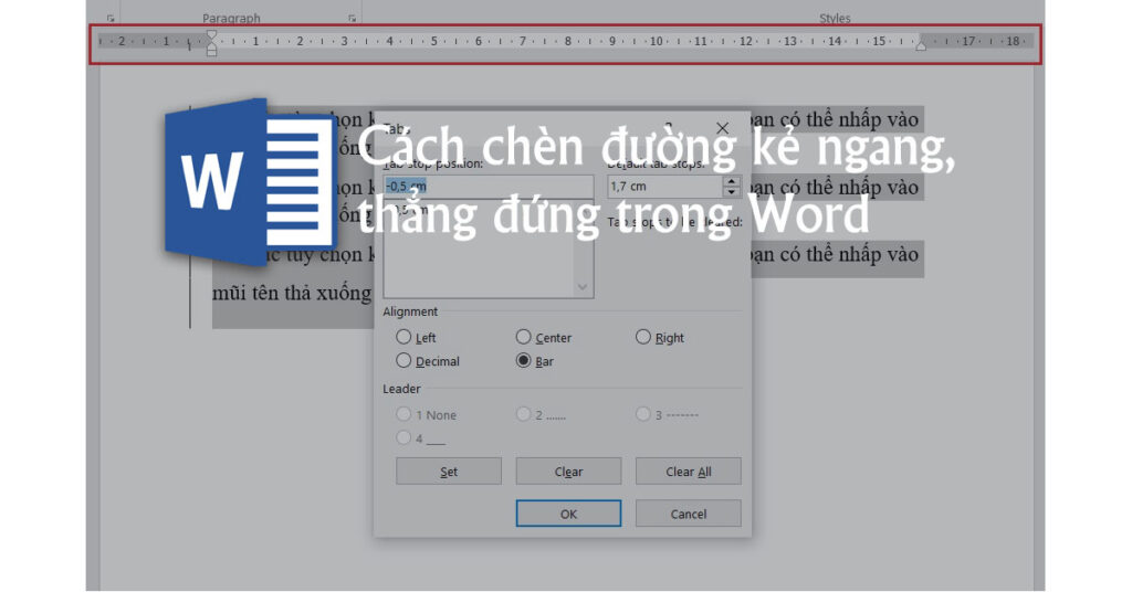 - Trong Tab stop position, hãy nhập vị trí mà bạn muốn đường thẳng đứng xuất hiện. Bạn có thể sử dụng thước ở đầu trang để xác định giá trị cần nhập