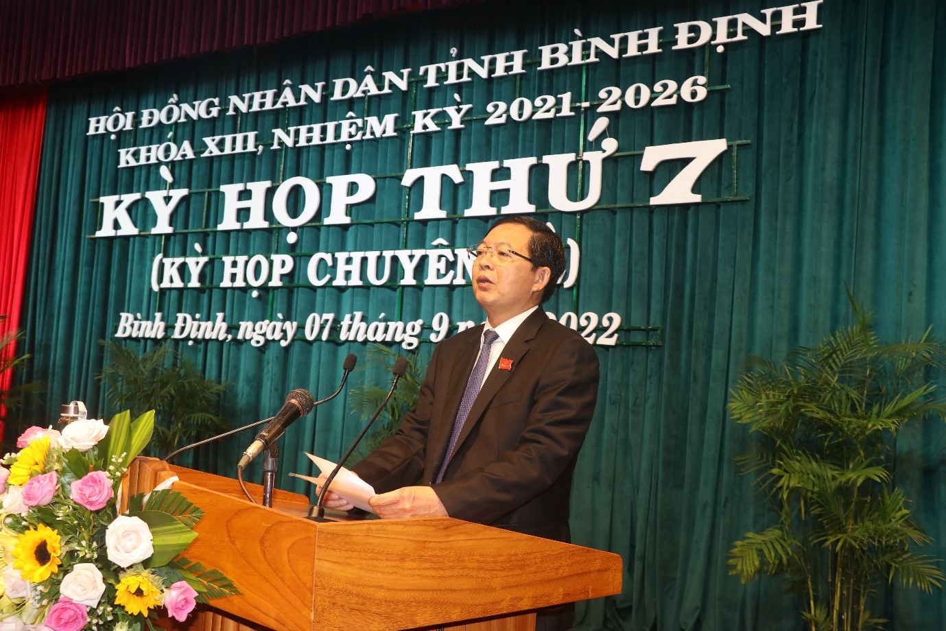 Phát biểu khai mạc kỳ họp Ông Hồ Quốc Dũng, Ủy viên Trung ương Đảng, Bí thư Tỉnh ủy, Chủ tịch HĐND tỉnh Bình Định cho biết: Kỳ họp thứ 7 nhằm mục đích tiếp tục cụ thể hóa các chủ trương, chính sách của Trung ương, của Tỉnh ủy, Ban Thường vụ Tỉnh ủy thành những cơ chế, chính sách cụ thể, làm cơ sở pháp lý để Ủy ban nhân dân tỉnh, các cấp, các ngành triển khai thực hiện thắng lợi các mục tiêu, nhiệm vụ mà Nghị quyết Đại hội Đảng bộ tỉnh, nhiệm kỳ 2020 – 2025 đã đề ra.