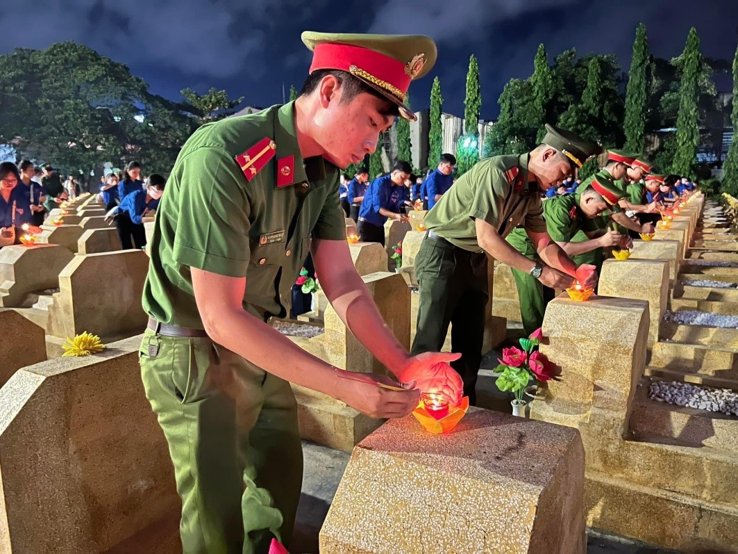 Kết thúc buổi lễ, lãnh đạo tỉnh, các đại biểu và các bạn đoàn viên, thanh thiếu nhi đã cùng thắp những nén nhang, dâng từng bông hoa tại từng mộ phần các anh hùng liệt sĩ. Mỗi ngọn nến được thắp lên là một lời tri ân, một lời hứa của thế hệ trẻ hôm nay trước các anh hùng liệt sĩ.