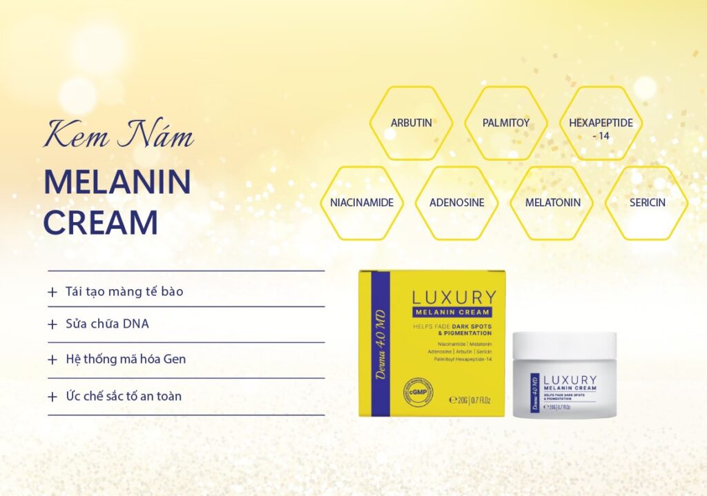 Đây là sản phẩm phối hợp nhiều thành phần ức chế hình thành Melanin ở tất cả 4 giai đoạn. Bên cạnh đó nó còn xử lý bề mặt Da lán mịn thông qua cơ chế tái tạo thượng bì.