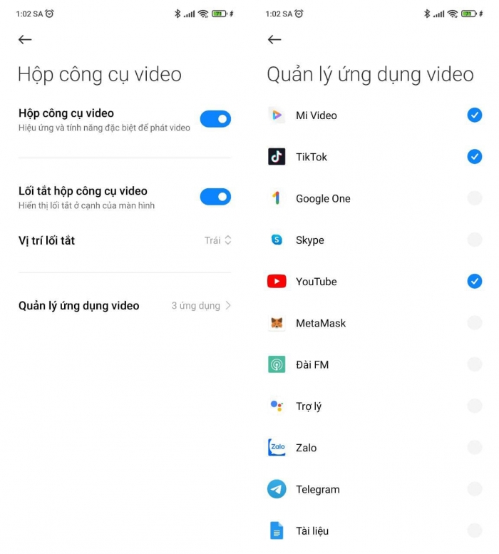 Tại phần Hộp công cụ video, hãy bật tất cả những tính năng có trong đó như Hộp công cụ video, Lối tắt hộp công cụ video. Sau đó thì nhấn vào Quản lý ứng dụng video, rồi tích vào Youtube.