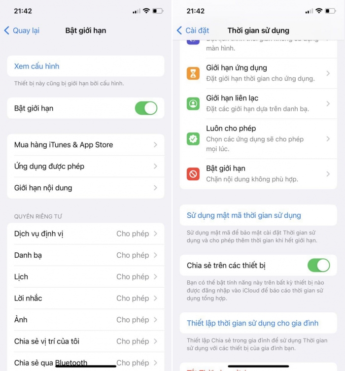 Tiếp theo, hãy nhấn vào mục Bật giới hạn và bật tính năng này lên nhé