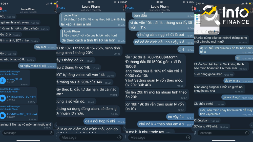 Trao đổi giữa anh N và anh H. với Louie Pham – tự nhận là nhân viên tư vấn của sàn Exness