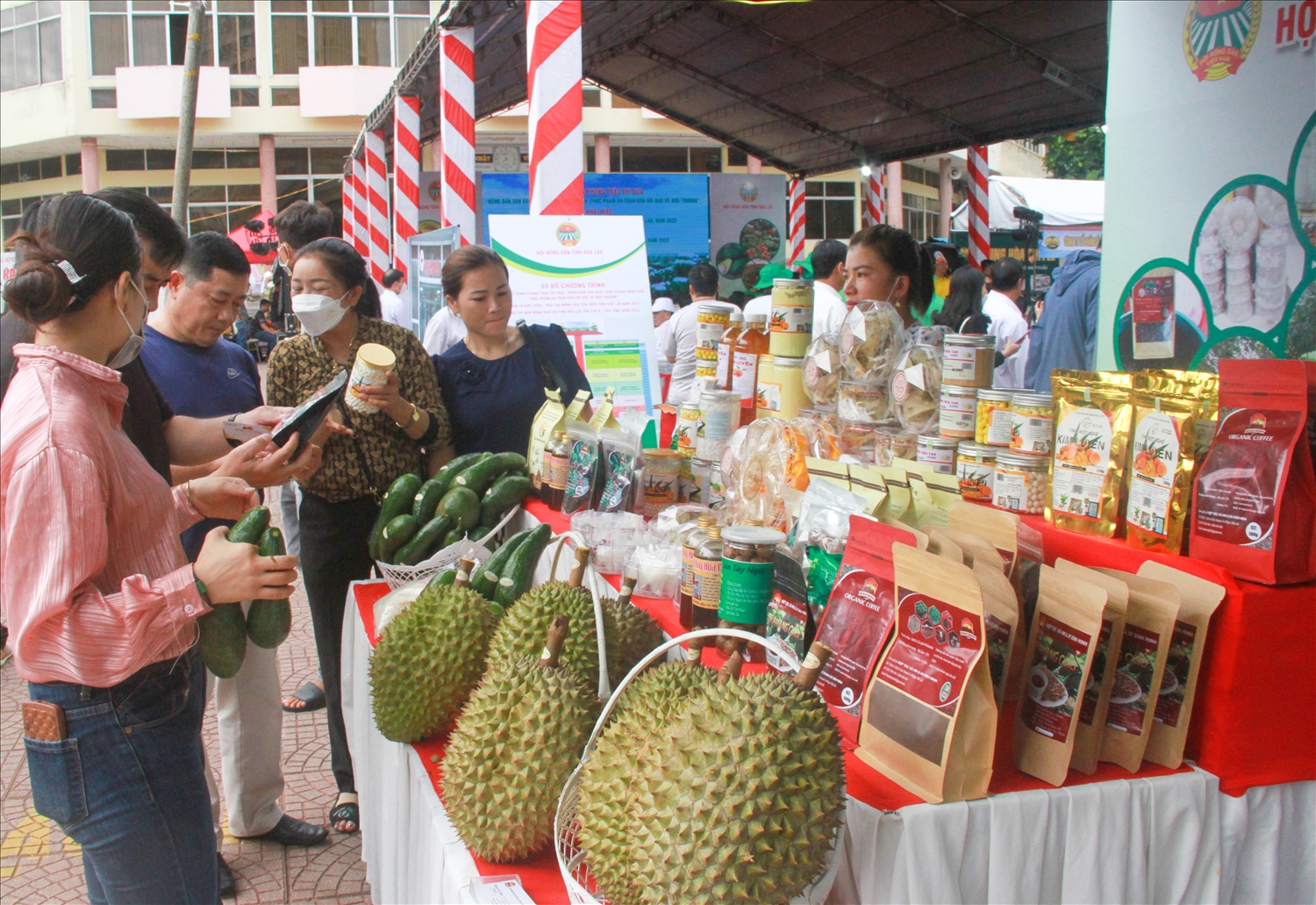 Chương trình năm nay có 60 gian hàng của Hội Nông dân các huyện, thị xã, thành phố trong tỉnh và các tỉnh Gia Lai, Kon Tum, Đắk Nông, Lâm Đồng, An Giang, Đà Nẵng, Lào Cai tham gia; trưng bày, giới thiệu gần 200 mặt hàng nông sản tiêu biểu, vật tư nông nghiệp phục vụ nông nghiệp công nghệ cao và nông nghiệp hữu cơ.