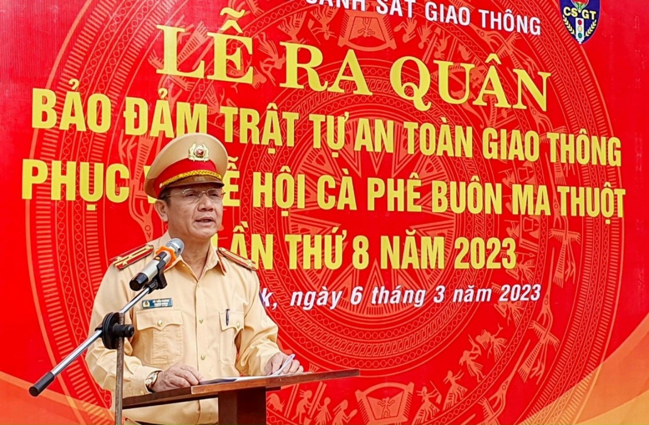 Phát biểu chỉ đạo tại buổi lễ, Thượng tá Vũ Tiến Thăng – Trưởng phòng CSGT Công an tỉnh Đắk Lắk chỉ đạo: “Toàn lực lượng cố gắng, nỗ lực, với quyết tâm chính trị cao nhất để hoàn thành tốt nhiệm vụ bảo vệ Lễ hội cà phê Buôn Ma Thuột lần thứ 8. Qua đó, xây dựng hình ảnh lực lượng CSGT Công an tỉnh “Trang nghiêm, thân thiện, nhân văn, vì nhân dân phục vụ”.