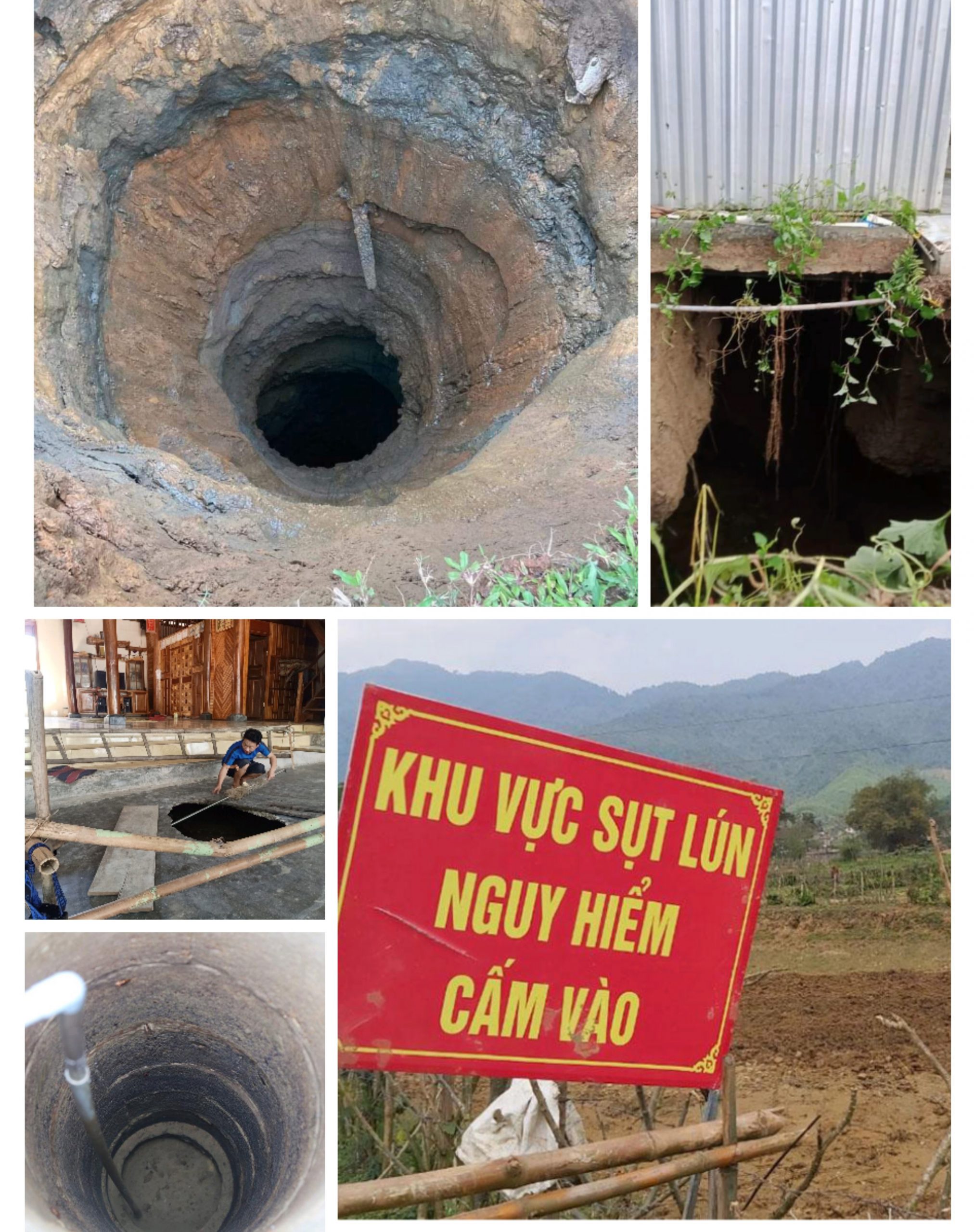 Trước đó, theo báo cáo của UBND xã Châu Hồng, trong thời gian hơn 2 năm (từ 2020-2022), địa phương này liên tiếp xuất hiện hiện tượng sụt lún, nứt nẻ nhà cửa, giếng nước cạn khô. Tính đến tháng 4/2022, xã Châu Hồng có đến 299 giếng nước bị cạn trơ đáy, 191 nhà dân bị nứt nẻ, hàng chục “hố tử thần”. Nhiều trường học, trạm y tế, UBND xã trên địa bàn cũng bị tình trạng tương tự.