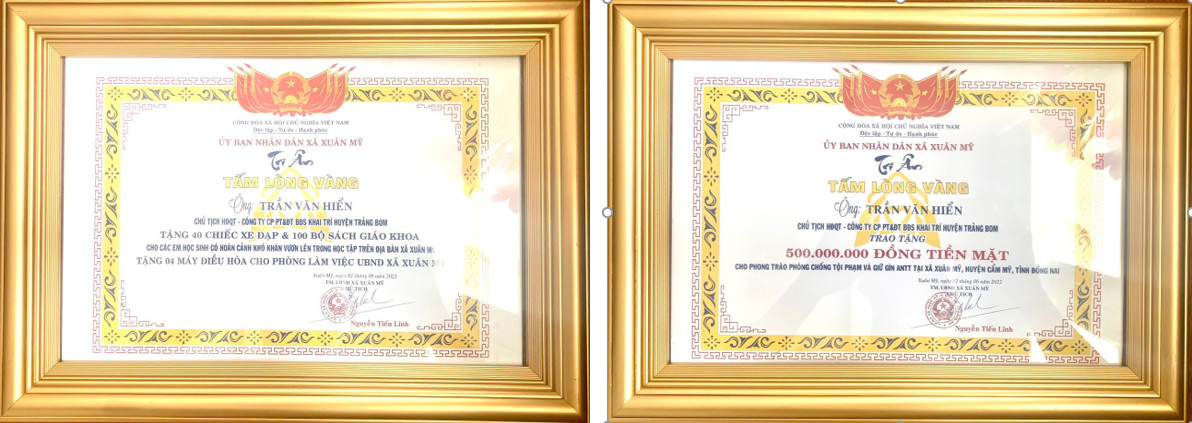 Bằng tri ân “Tấm lòng vàng” đến Công ty Khai Trí