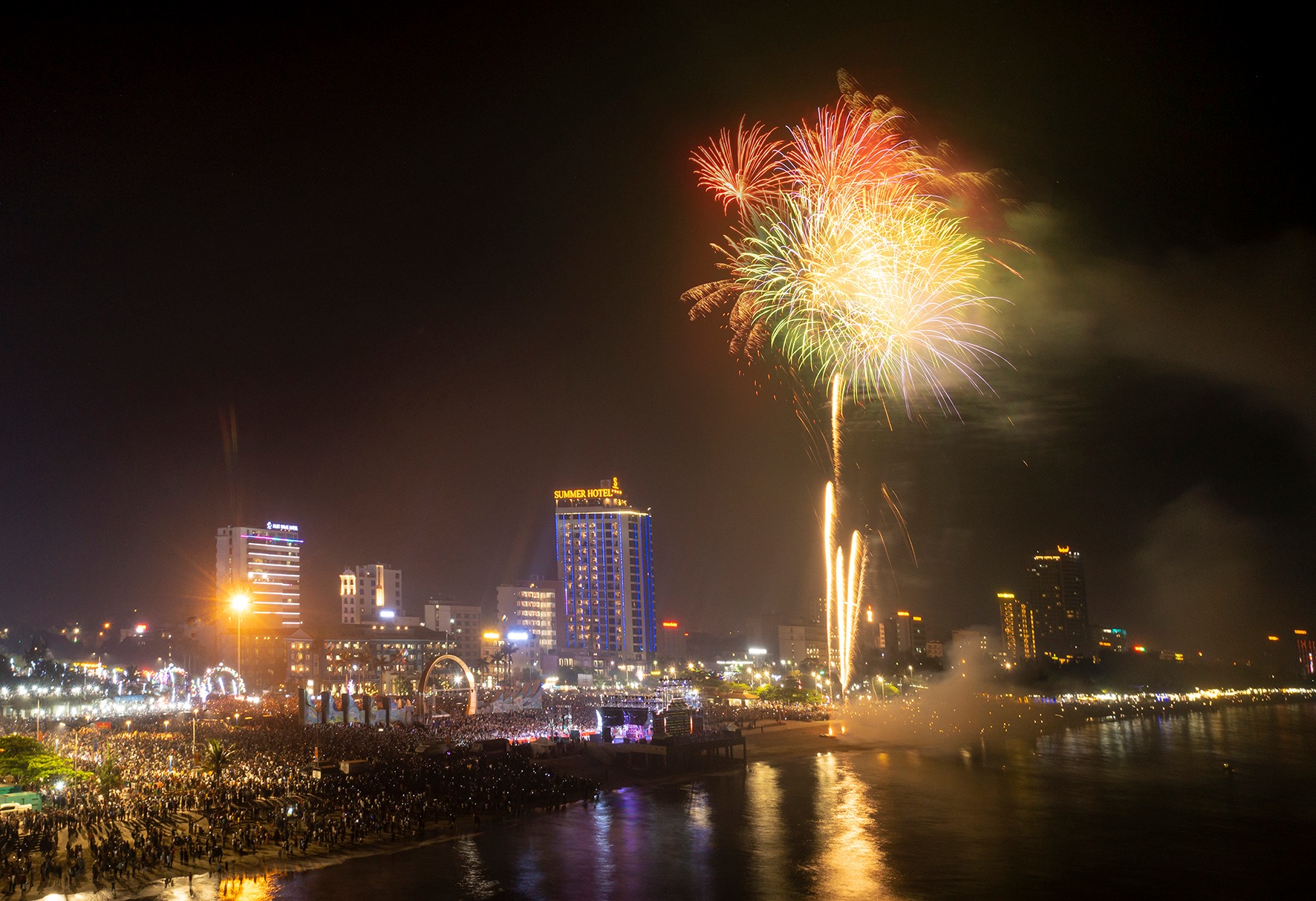 Các đại biểu và du khách cũng đã được thưởng thức màn bắn pháo hoa rực rỡ sắc màu. Màn bắn pháo hoa đã khép lại đêm khai mạc Lễ hội du lịch biển Cửa Lò 2023, để lại nhiều ấn tượng trong lòng hàng vạn người dân và du khách tham dự.