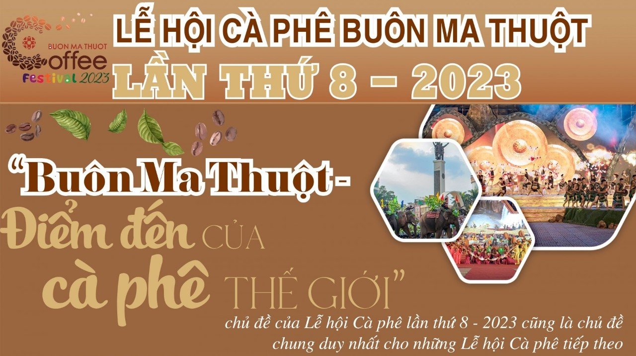 Lễ hội cà phê Buôn Ma Thuột lần thứ 8 năm 2023 với chủ đề “Buôn Ma Thuột – Điểm đến của cà phê thế giới” từ ngày 10 đến 14-3-2023 tại TP Buôn Ma Thuột và một số địa phương của tỉnh Đắk Lắk.