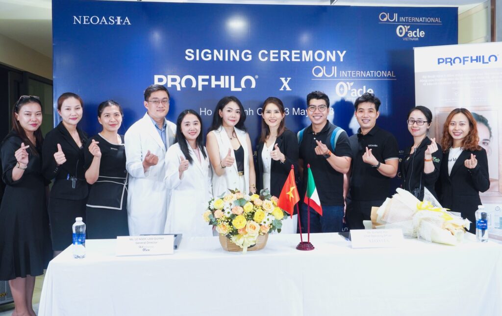 Trong những ngày cuối tháng 5/2023, Oui Internatinal – Oracle Clinic và tập đoàn Neoasia đã tổ chức Lễ ký kết hợp tác phân phối chính hãng sản phẩm Profhilo tại Việt Nam. Đây là một sự kiện quan trọng đánh dấu sự hợp tác chiến lược giữa hai thương hiệu trong việc mang Profhilo – một dòng sản phẩm tiêm trẻ hóa da tiên tiến đến với người tiêu dùng Việt Nam. Ngay từ khi mới xuất hiện trên thị trường, Profilo đã nhanh chóng ghi danh vào danh sách những sản phẩm được yêu thích nhất tại nhiều quốc gia trên thế giới.