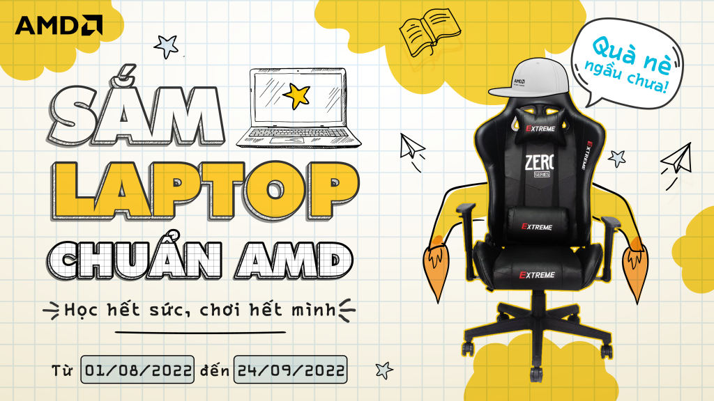 Mùa tựu trường sắp trở lại, để hòa chung không khí với các bạn sinh viên, AMD tung ra chương trình khuyến mãi đặc biệt. Chỉ cần mua ngay laptop cấu hình AMD, người dùng sẽ nhận được 01 phần quà kèm theo cơ hội rút thăm trúng ghế gaming cực ngầu.