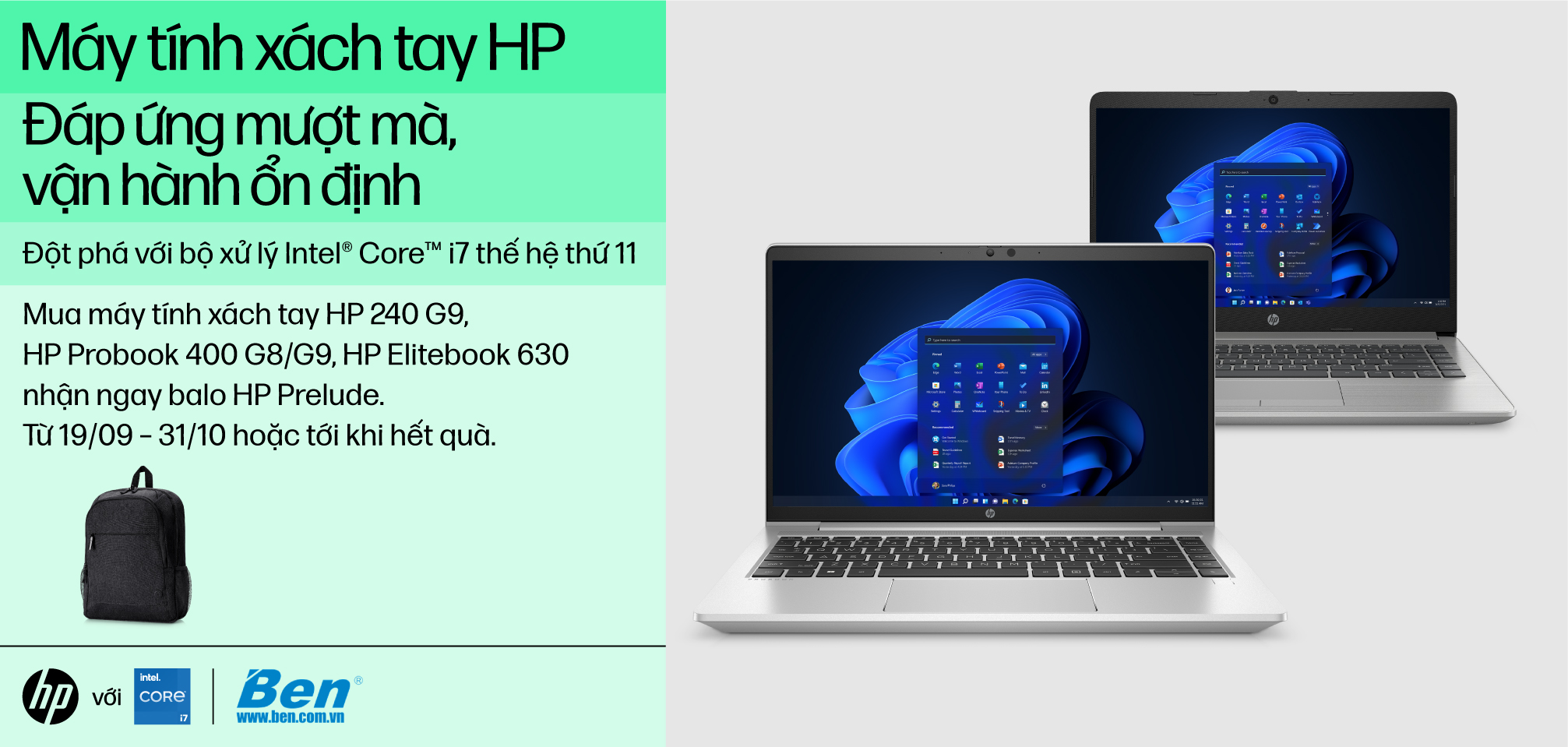 Thàng 9 này, Ben Computer cùng thương hiệu HP triển khai chương trình tri ân tặng quà cho khách hàng mua laptop HP chính hãng với những phần quà hấp dẫn. Chương trình đang được triển khai trên mọi kênh bán hàng của Ben Computer.