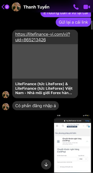 Tạp chí TTV nhận được phản ánh của anh Trần Hữu Tôn V. tố giác sàn Forex Lite Finance có dấu hiệu lừa đảo. Anh V. kể lại: “Ngày 10/6/2021, tôi được một người có tài khoản Facebook tên “Thanh Tuyền” kết bạn và mời anh tham gia đầu tư “chứng khoán quốc tế” tại sàn Lite Finance. Sau khi nghe tư vấn và cam kết đảm bảo rủi ro về vốn khi tham gia đầu tư từ “Thanh Tuyền” nên tôi đồng ý. Sau nhiều lần nạp với tổng số tiền là 7000 USD vào sàn Lite Finance, không thấy tiền lãi như cam kết mà tài khoản của tôi lại bị cháy. Bức xúc với sự việc trên, tôi đã liên hệ với Facebook “Thanh Tuyền” và Hotline của sàn Lite Finance nhưng không liên lạc được”.