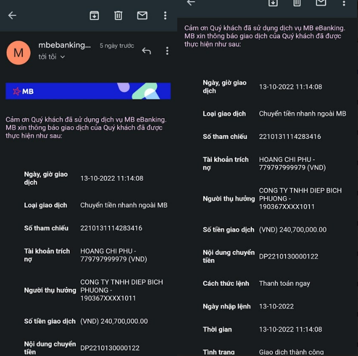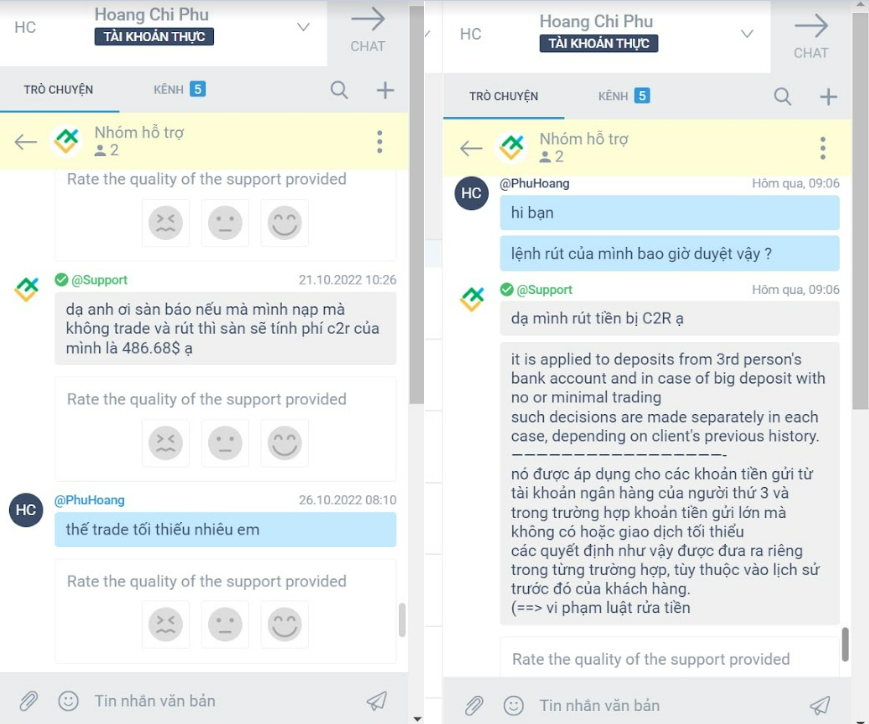 Lo lắng về số tiền đã nạp trước đó, trong 2 ngày 28 và 31/10 anh đã đặt lệnh rút tiền nhưng đều bị từ chối và phía sàn yêu cầu anh cung cấp các thông tin mình là chủ tài khoản mới được rút. Sau đó, anh Phú đã thực hiện theo yêu cầu của phía sàn nhưng vẫn không rút được lại số tiền đã nạp trước đó.