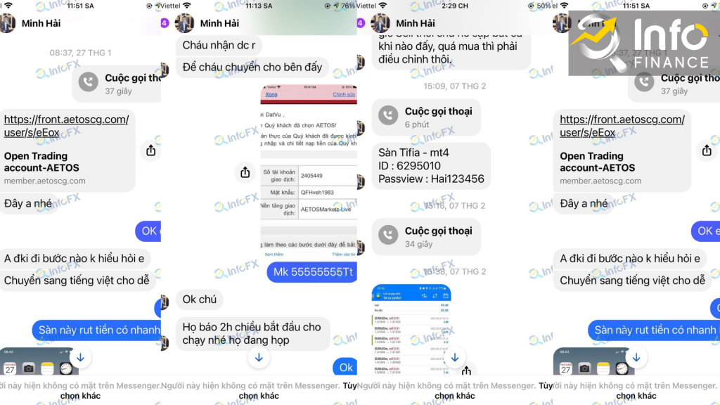Một trường hợp khác là anh L.Q.T cũng bị một người tự nhận là chuyên viên tư vấn của sàn AETOS MARKET tên Nguyễn Tuấn chào mời. Tuấn sử dụng chiêu bài chèo kéo, đưa ra bài toán lợi nhuận hấp dẫn cho anh T. Do chưa tìm hiểu kỹ và cho rằng cơ hội đầu tư của mình đã đến, anh T. quyết định mở tài khoản và tham gia giao dịch trên sàn AETOS MARKET. Ban đầu, Tuấn hỗ trợ anh T. các giao dịch một vài lệnh đem lại lợi nhuận khả quan để lấy lòng tin. Tiếp theo, Tuấn sử dụng tài khoản của anh T. đặt các lệnh lớn hơn gây thiệt hại lên đến 3.000USD trong khi anh T. đã có yêu cầu đi lệnh nhỏ để hạn chế thua lỗ.