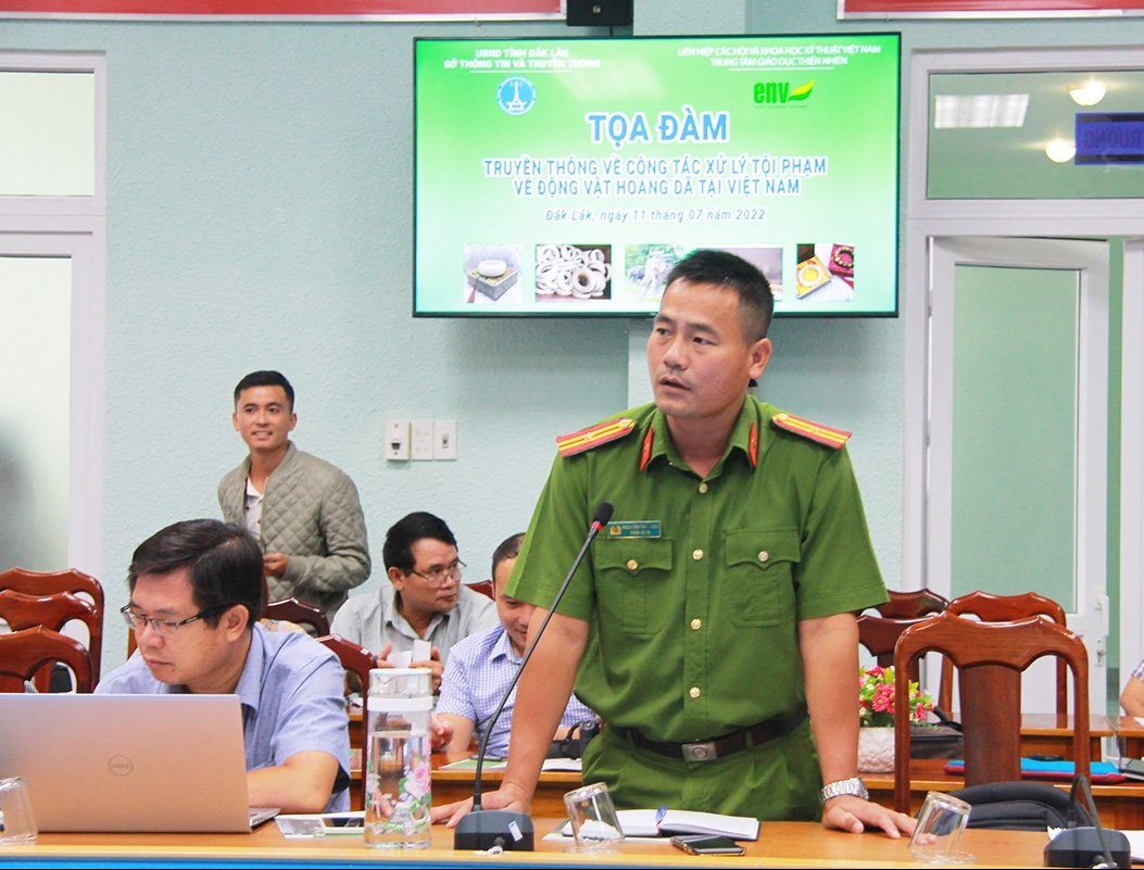 Cũng tại sự kiện, ôngTrương Văn Ty (cán bộ chi cục kiểm lâm tỉnh Đắk Lắk cho biết, trong năm 2020 đơn vị đã xử lý 10 vụ vi phạm liên quan đến động vật rừng tịch thu 27 cá thể, trọng lượng 95,8kg. Năm 2021, đơn vị đã xử phạt 8 vụ liên quan đến hành vi săn bắn và vận chuyển trái phép động vật rừng. Trong đó, xử lý hình sự 2 vụ; phạt hành chính 6 vụ. Đầu năm 2022, Chi cục Kiểm lâm tỉnh đã tham mưu cho Sở NN&PT NT trình UBND tỉnh phê duyệt phương án xử lý động vật rừng để cứu hộ và thả về môi trường tự nhiên 8 cá thể: 1 tê tê ; 1 vọoc bạc đông dương; 6 khỉ đuôi lợn. Ngoài ra, các đại biểu đến từ các cơ quan báo chí Trung ương và địa phương đã đề xuất nhiều giải pháp căn cơ nhằm thực hiện có hiệu quả công tác bảo về ĐVHD và công tác tuyên truyền phổ biến pháp luật đến người dân, đặc biệt là các cơ sở, đối tượng đã từng vi phạm quy định bảo vệ động vật hoang dã.