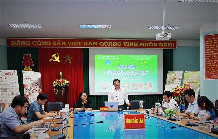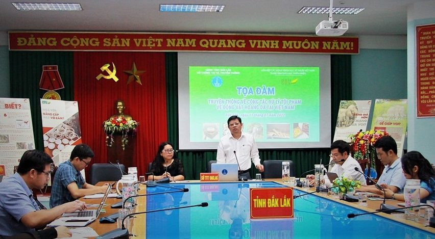 Nhằm triển khai các hoạt động giảm thiểu nhu cầu tiêu thụ các sản phẩm bất hợp pháp từ ngà voi và các sản phẩm động vật hoang dã nguy cấp, quý hiếm khác, sáng ngày 11/7, tại thành phố Buôn Ma Thuột, Trung tâm Giáo dục Thiên nhiên (ENV) phối hợp với Sở Thông tin và Truyền thông tỉnh Đắk Lắk tổ chức buổi tọa đàm truyền thông với chủ đề: “Tuyên truyền về công tác xử lý tội phạm về động vật hoang dã’’